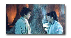 紫霞与青霞(朱茵饰)本是如来佛祖座前日月神灯的灯芯,白天是紫霞,晚上是青霞,二人虽然同一肉身却仇恨颇深。紫霞有一誓言,只要谁能拔出她手中的紫青宝剑,就是她的意中人,此举被看成是仙界的耻辱而遭到追杀。